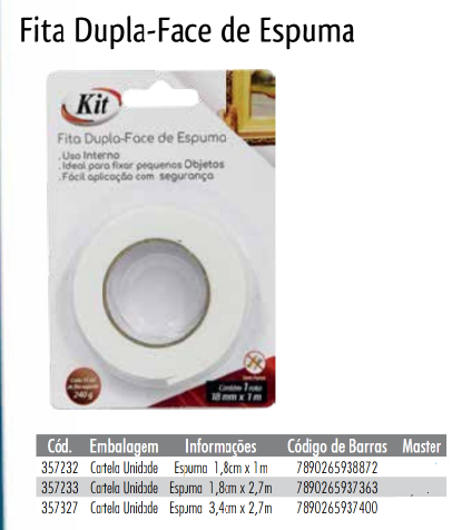 | Nome do Produto | : | FITA DUPLA FACE ESPUMA 18MMX1M R.24299-01 - CARTELA - KIT |
