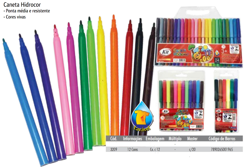 | Nome do Produto | : | CANETA HIDROCOR IMPORTADA 12 CORES 868-12 - KIT |